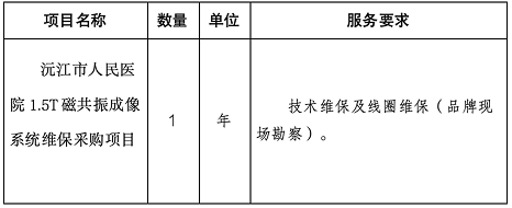 1、项目名称:沅江市人民医院1.5T磁共振成像系统维保采购项目