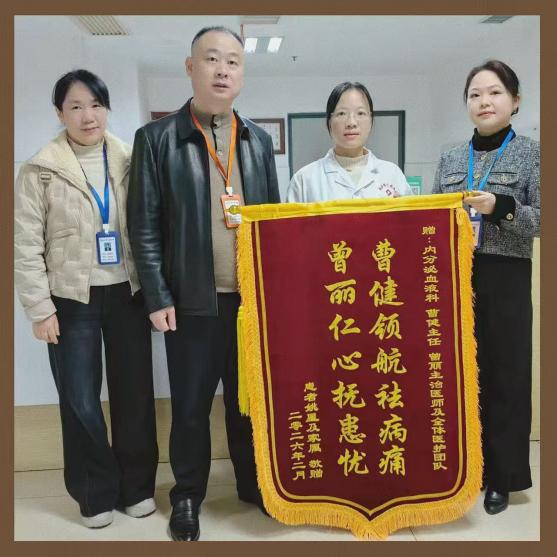 在我院内分泌/血液科,姚某感受到的却不是冰冷的治疗,而是温情的陪伴。从曹健主任的精准施策,到曾丽主治医师的暖心抚慰;从郭照光医生的妙手回春,到护理团队的悉心照护——八年里,累计近50次的住院与治疗,每一次推针送药,每一次病情观察,每一次俯身倾听,都成了连接医患之间最温暖的纽带。