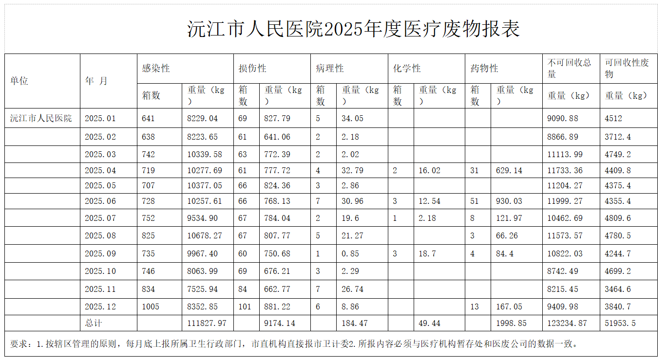 本院有胃肠镜中心,呼吸内科、泌尿外科、检验科等 34 个部门产生医疗危险废物。